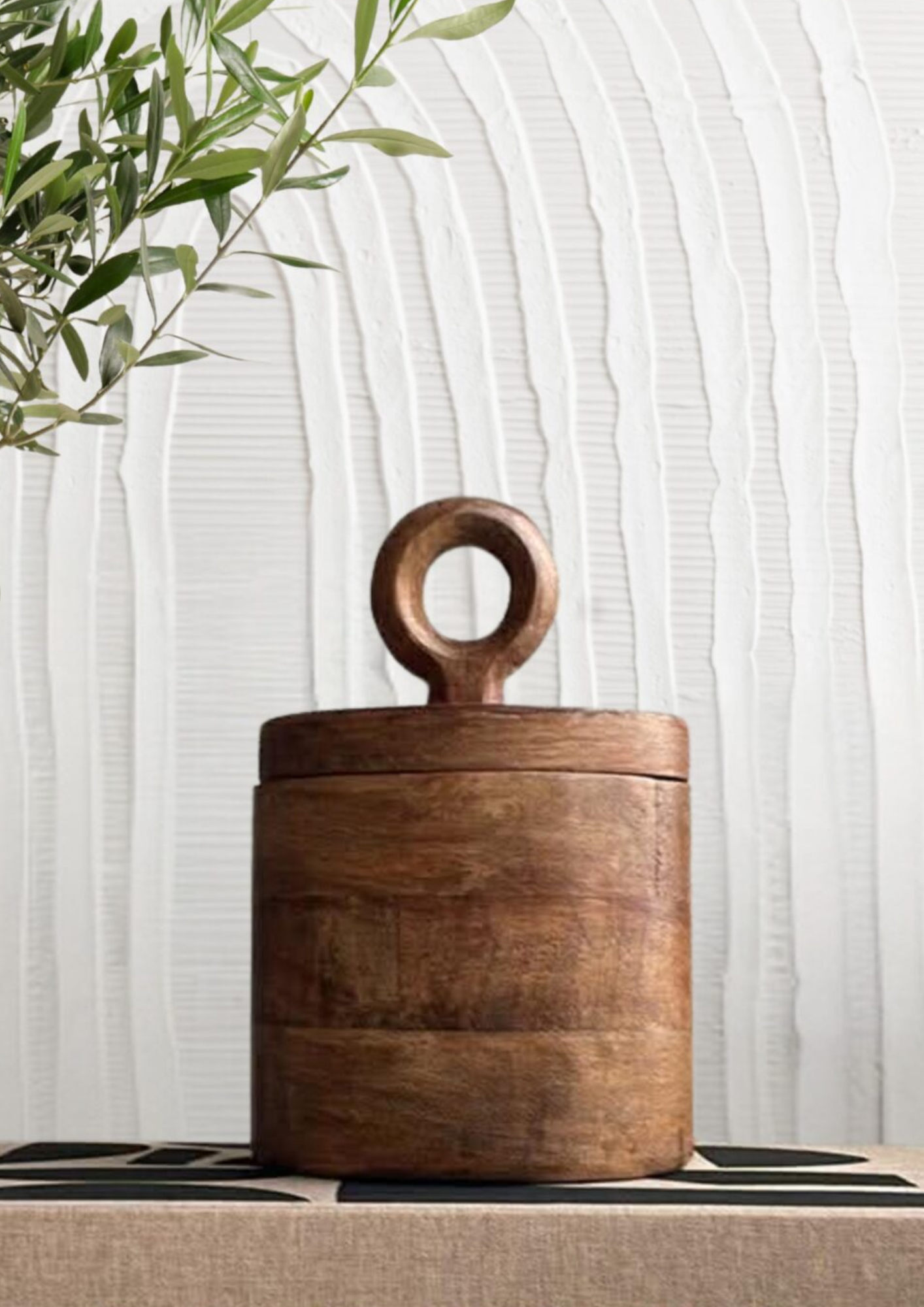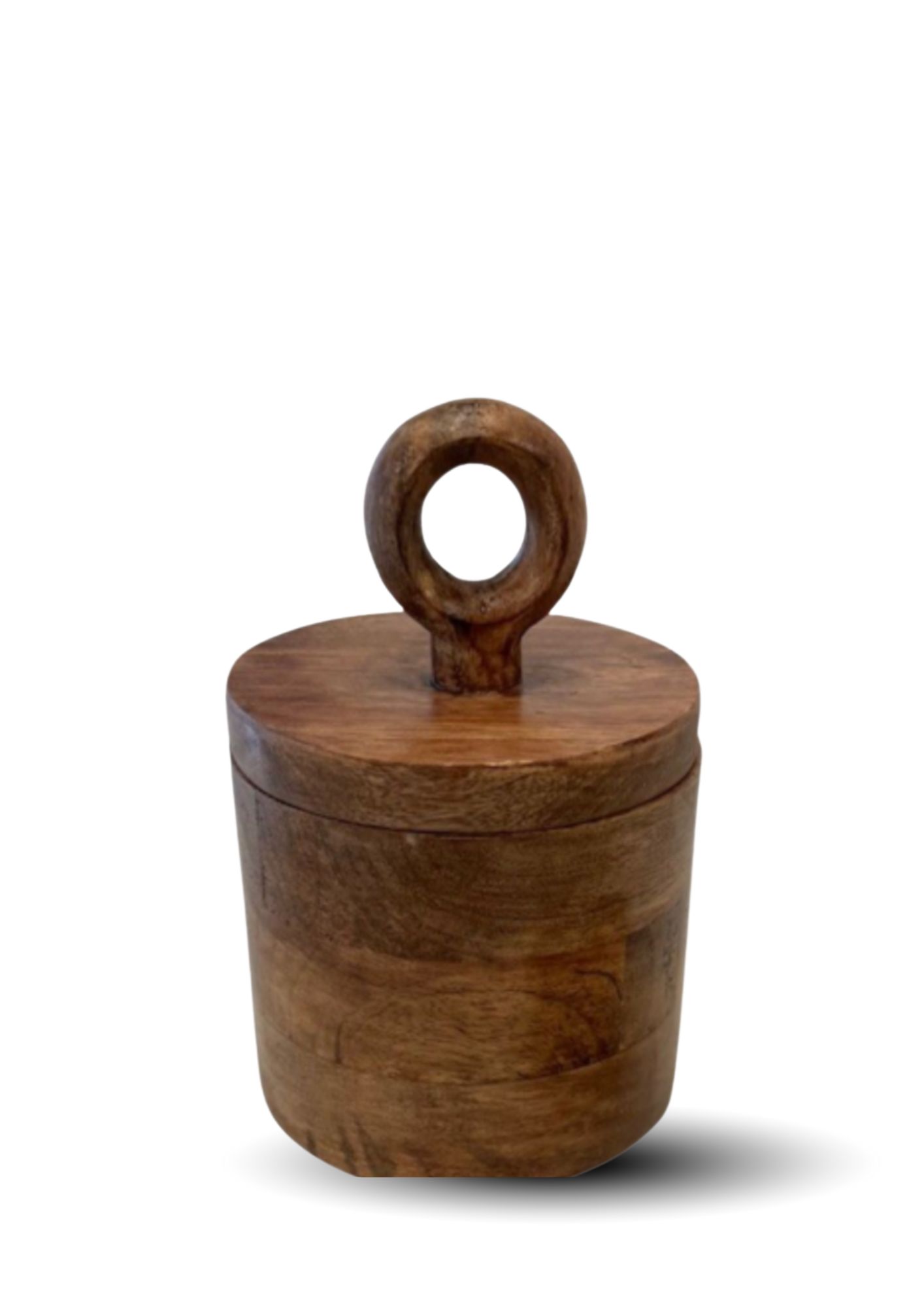 Handgjorda träföremål i bambu – naturlig skönhet med omsorg i varje detalj. Burk Kanawa med vacker knopp.
