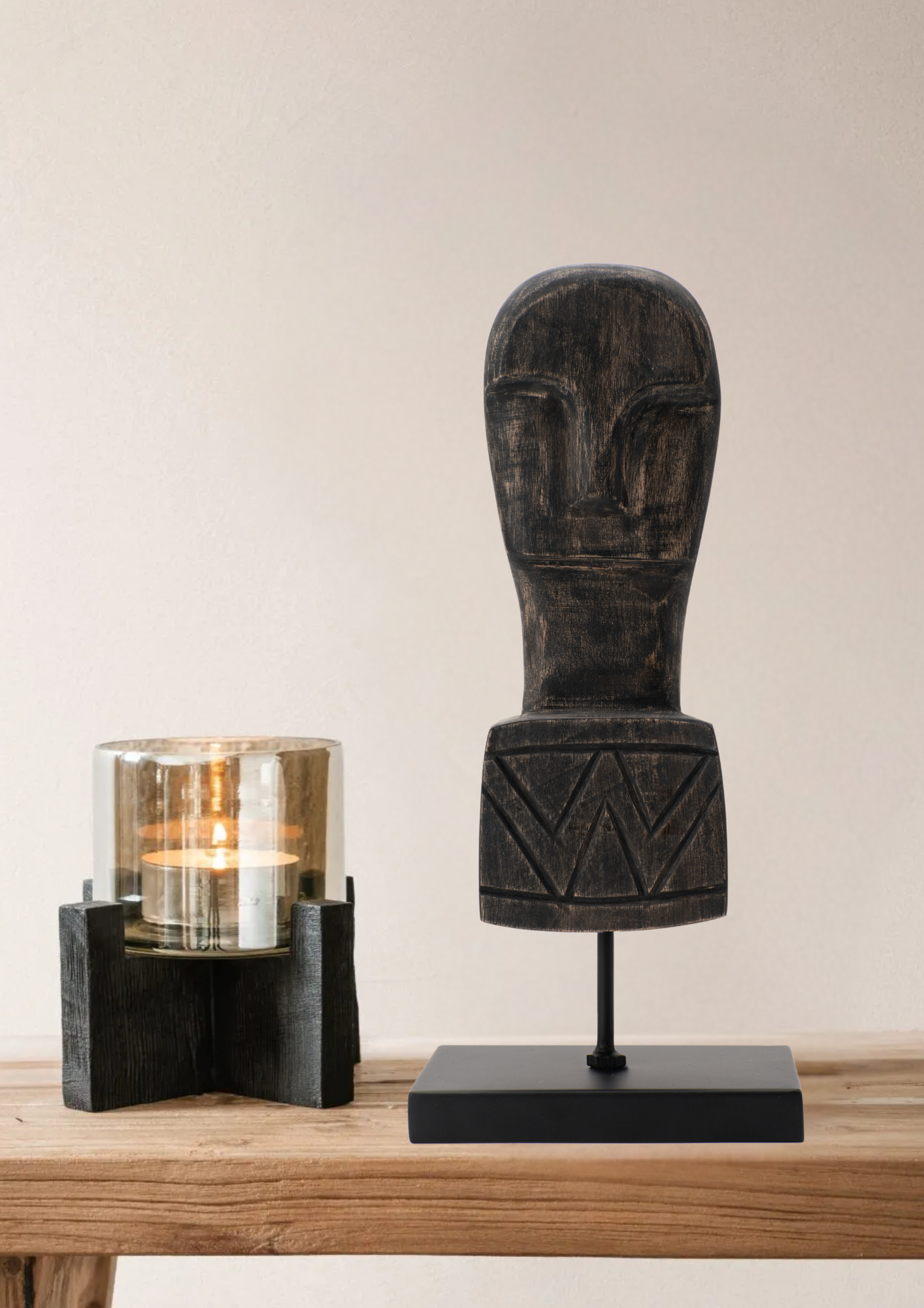 Statue in black wood with black metal base