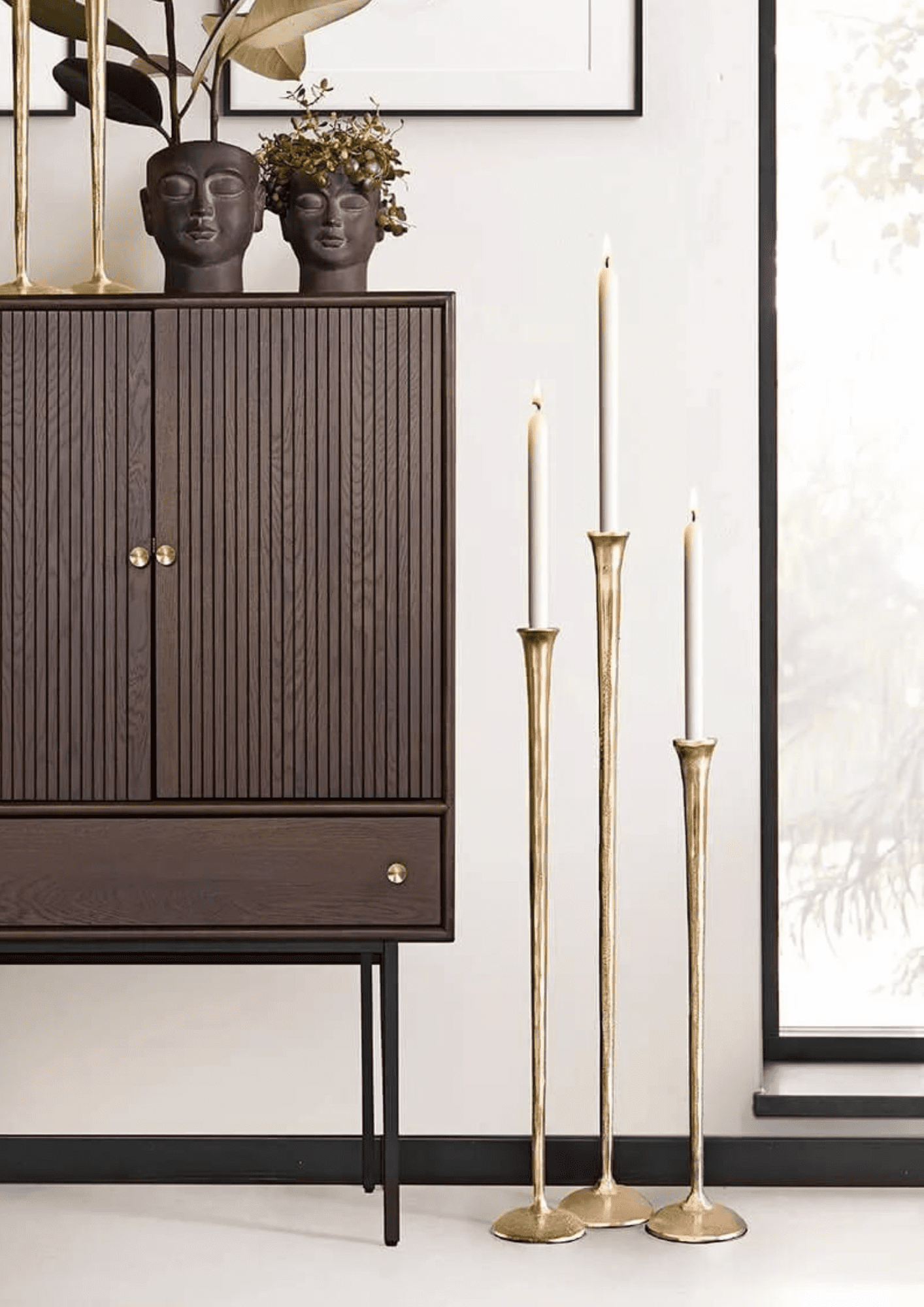 Ljusstakar i rå aluminium, komplett set består av 3 delar.