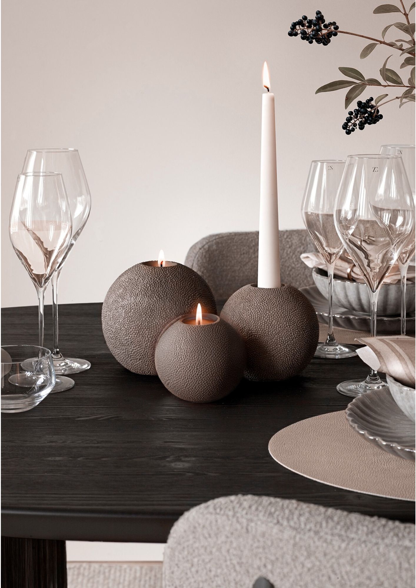 Klotformad ljusstake tillverkad i beige tåligt polyresin. Matcha med flera färger och storlekar.