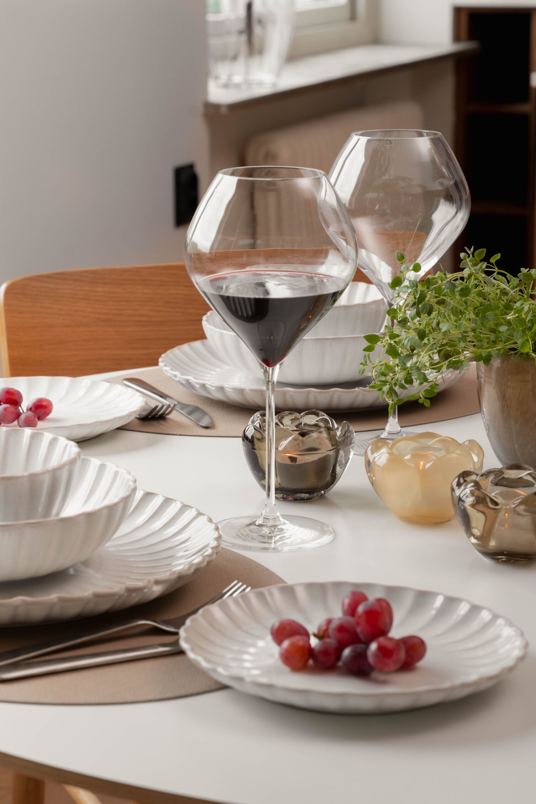Grace Bourgogne vinglas i 4-pack. Ett vackert glas, varsamt munblåst av skickliga hantverkare i Europa. Glaset rymmer 860ml och blir ljuvligt till en festligare middag där glaset får en central roll i dukningen.